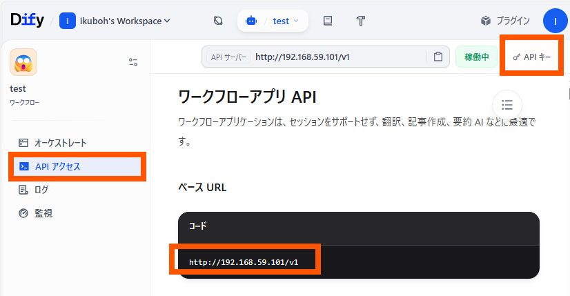 Dify URL = http://192.168.59.101/v1/workflows/run
