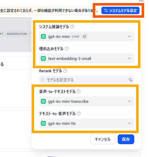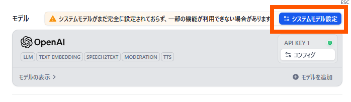 - 最低限、システム推論モデルと埋め込みモデルを設定する